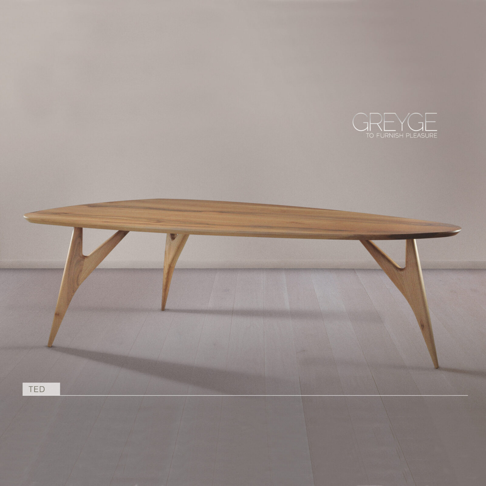 Ogni tavolo รจ unico, grazie alla lavorazione artigianale che esalta la venatura naturale del legno e ne preserva la matericitร . Perfetto per ambienti residenziali o contract di pregio, TED unisce forza scultorea e raffinatezza minimale, incarnando la filosofia Greyge di equilibrio tra arte e funzione.