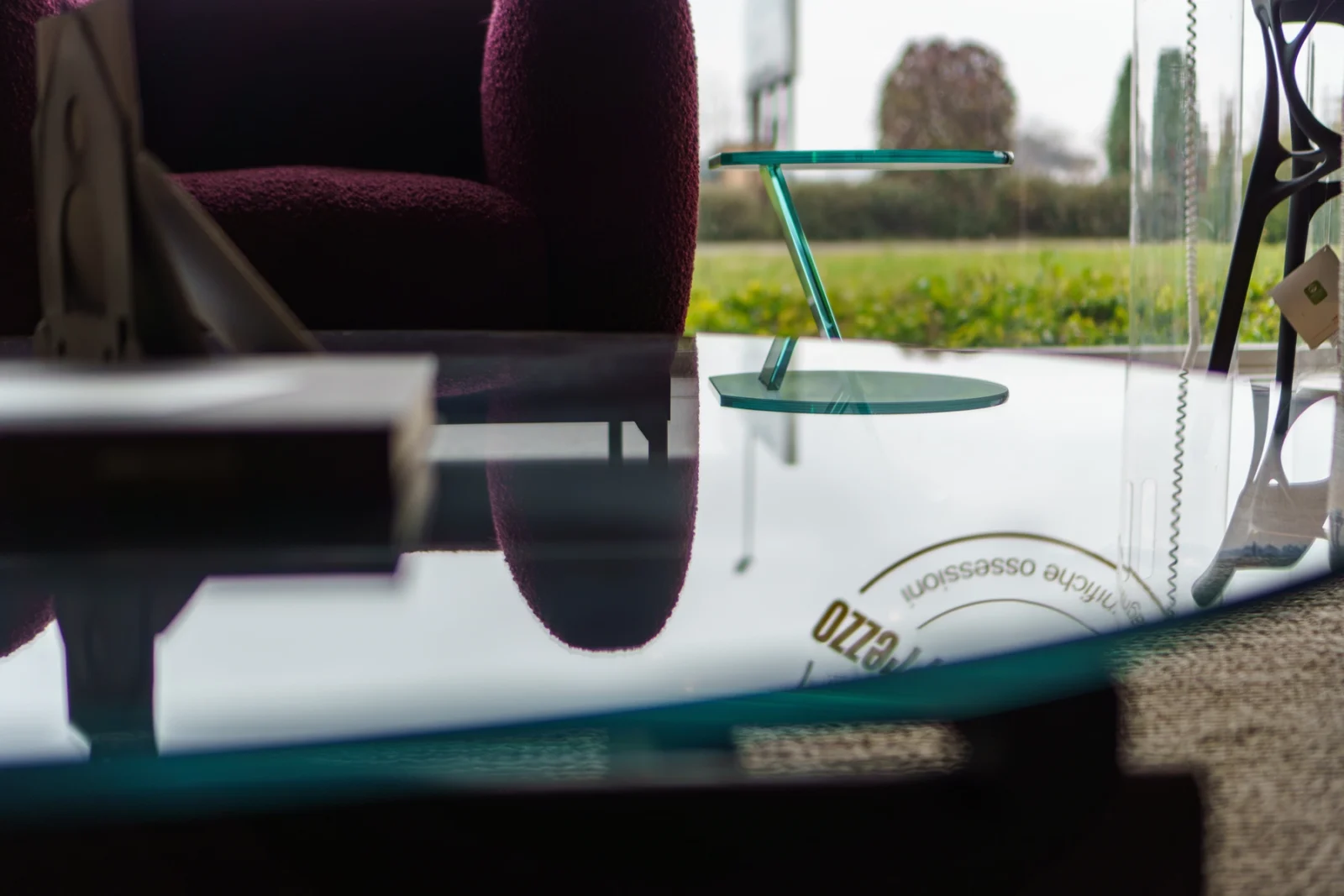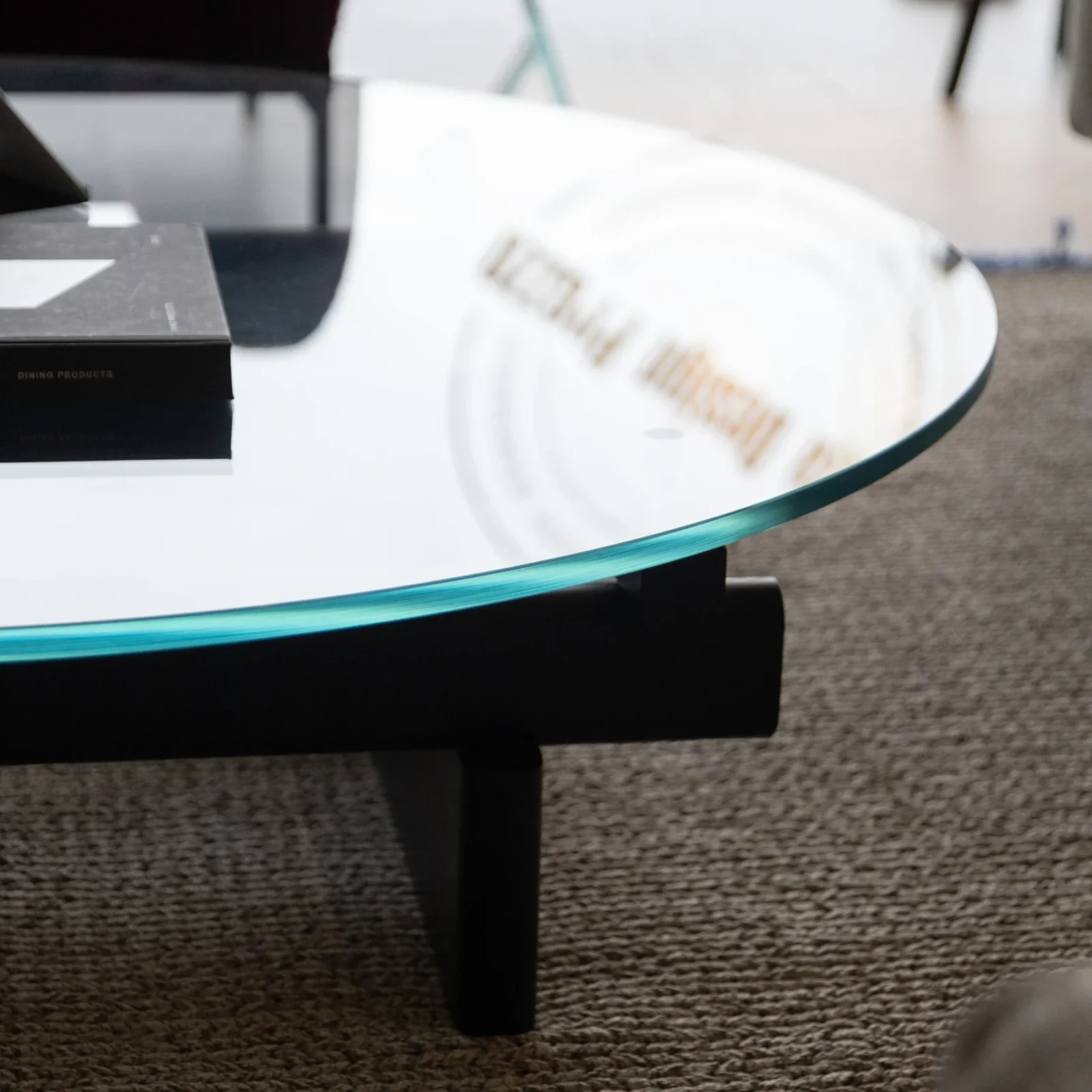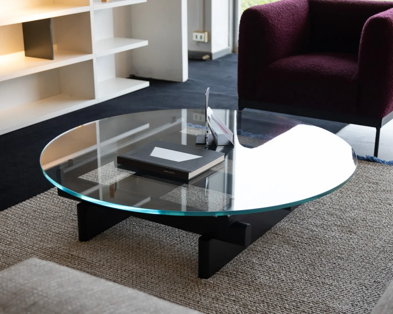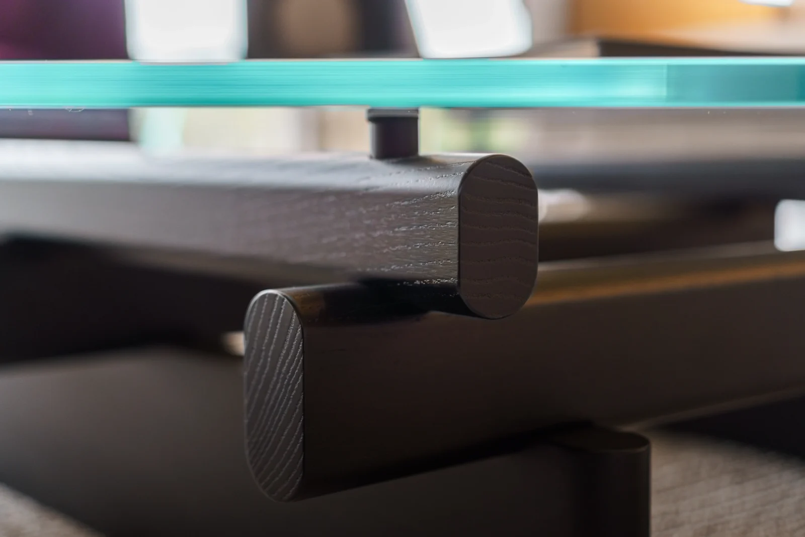 Il tavolino Sengu disegnato da Patricia Urquiola รจ un complemento d'arredo elegante, ispirato all'architettura e alla cultura orientale. Questo tavolino, con il suo piano in vetro extrachiaro e una solida struttura in rovere tinto nero, rappresenta una perfetta fusione tra materiali diversi, esaltati dal design moderno.