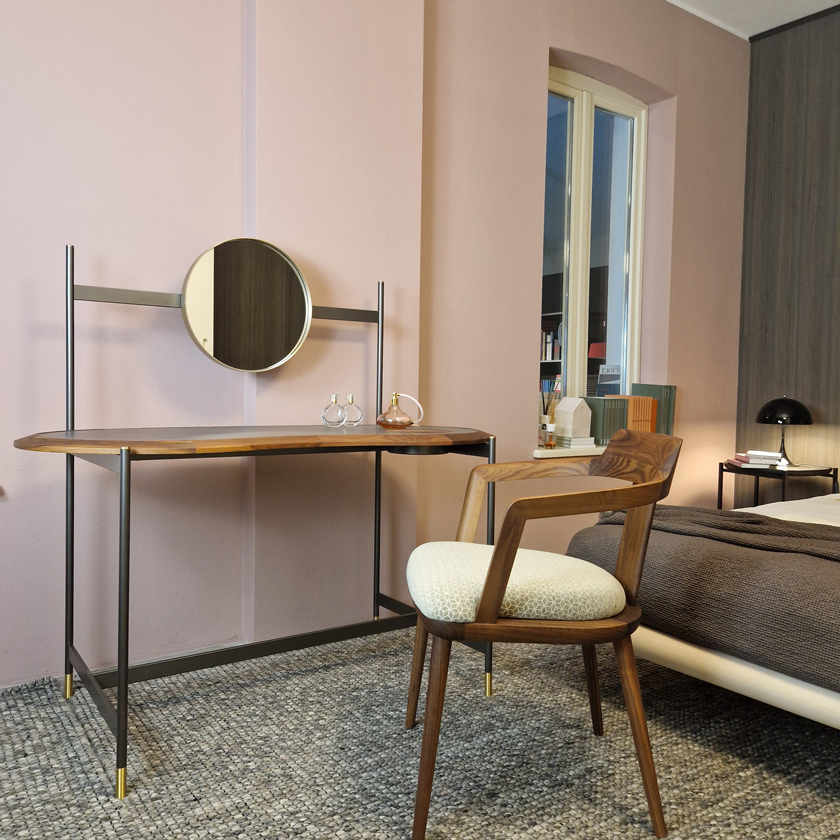 Il Vanity Ninfea di Porada interpreta la toeletta contemporanea con un equilibrio perfetto tra estetica, funzionalitร e artigianalitร italiana. Disegnato da Niccolรฒ Devetag, questo scrittoio di design combina una raffinata struttura in noce canaletta con dettagli in metallo dalle finiture pregiate, trasformando un complemento dโarredo in un vero oggetto scultoreo.